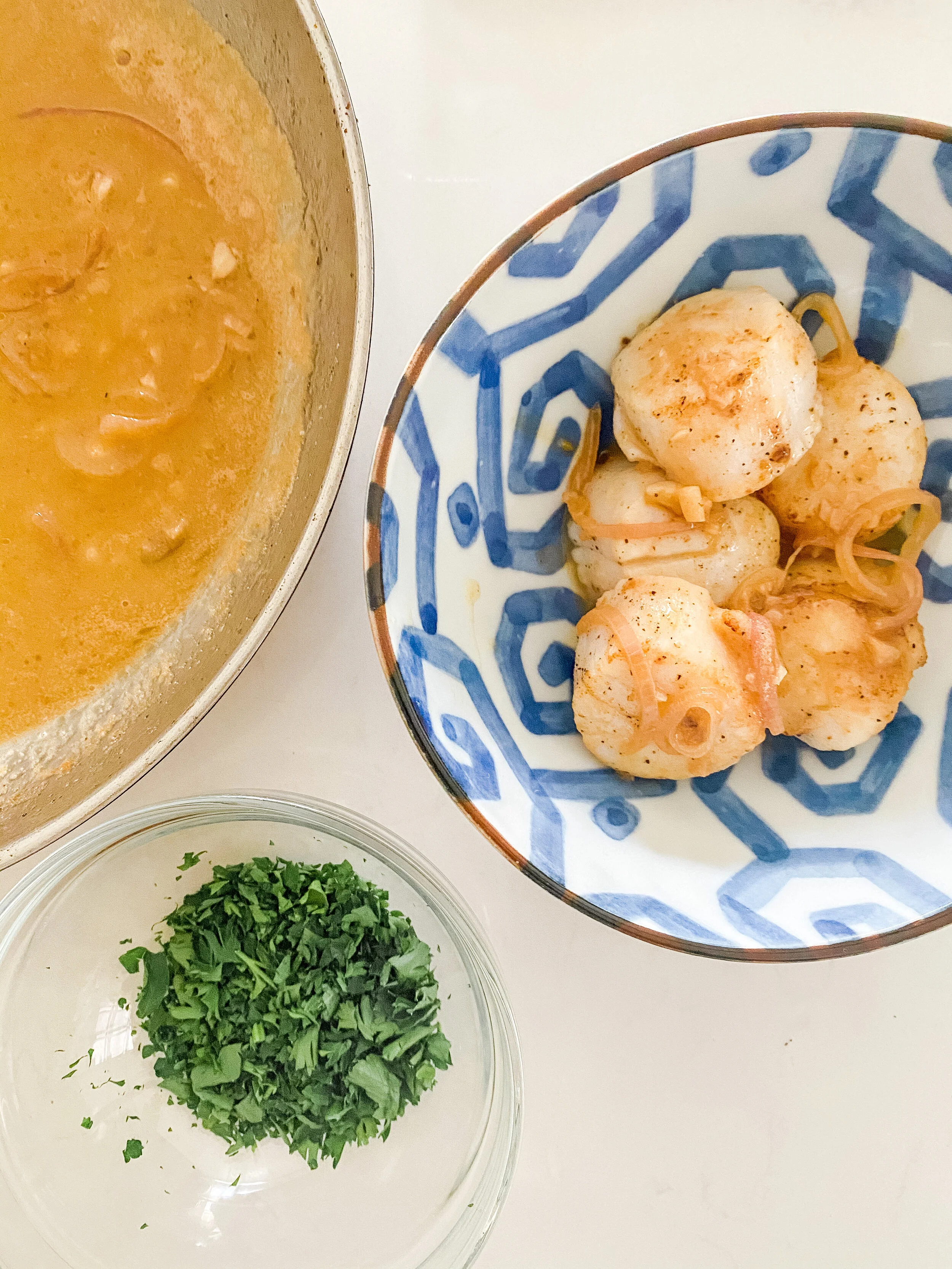 - Plate scallops, spoon (a generous amount) of sauce on top and finish with a sprinkle of parsley. Serve immediately.